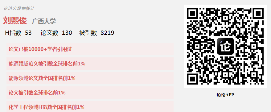 据“论论学术大数据平台“(国家工信部官方备案)最新统计数据,永利官网刘熙俊教授截止目前已发表高水平学术论文130余篇,论文总被引数累计8200余次,入选论文被引数全球排名前1%,主要研究方向涵盖材料学、化学、能源等领域,在Science Advances、Nature Communications、Journal of the American Chemical Society、Angewandte Chemie和Advanced Functional Materials等期刊累计发表10余篇,个人H指数为53。