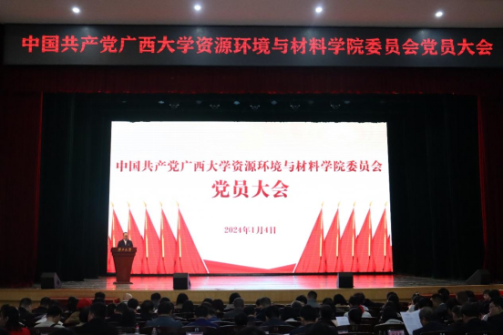 2024年1月4日,中共yL23411永利官网登录资源环境与材料学院委员会党员大会在yL23411永利官网登录大礼堂举行。本次大会的主要任务是听取和审议上一届学院党委工作报告,书面审议上一届学院纪委工作报告和党费收缴使用管理情况报告,选举产生新一届学院党委委员和纪委委员。校党委组织部董攀同志到会指导。学院全体师生党员参加会议,会议由学院党委副书记、纪委书记吴达慧同志主持。