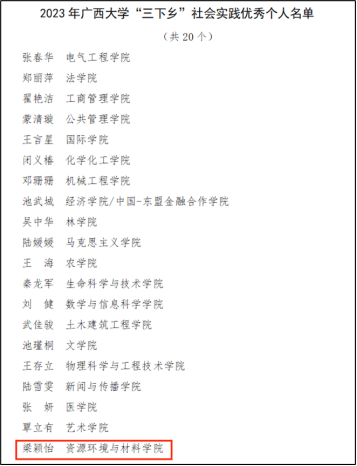 为总结交流经验、推动引领示范、激励广泛参与、发挥育人实效,学校通报表扬了一批在2023年“三下乡”社会实践活动中表现突出的优秀集体、团队和个人。经学院申报推荐、组织评议等环节,最终确定7个“三下乡”社会实践优秀单位、25个“三下乡”社会实践优秀团队、20个“三下乡”社会实践优秀个人。
