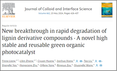 近期,永利官网刘焘教授课题组依托广西特有的丰富天然生物资源和具备可调控性能的有机半导体材料,成功开发出了一系列太阳能电池器件及新型光催化-吸附多功能材料。这一系列材料的创新设计和开发不仅能够高效利用太阳能资源,降解造纸废水中的木质素等有害物质,快速去除水体中的各种有机污染物,而且可用于高附加值清洁能源生产与二氧化碳催化转化,这一系列研究成果标志着在材料、能源和环境领域的重大突破,为解决全球能源、环境污染问题提供了重要的科学支持和技术手段。相关成果陆续发表在Aggregate、Surf.、Small、J. Colloid Interface Sci、J. Cleaner Prod.等多个国际权威期刊上发表。