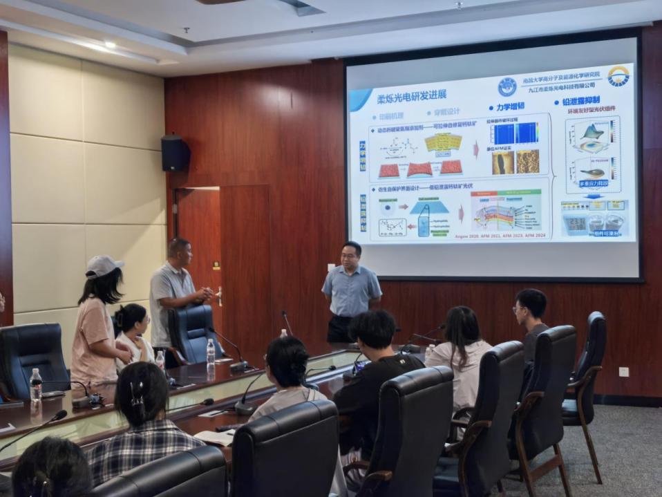 8月26日上午,南昌大学教授、九江柔烁光电技术总监胡笑添莅临永利官网进行学术及科技成果转化交流,并作了题为《柔性光伏器件及产业化探索》的学术报告。报告会由学院刘焘教授主持,永利官网材料物理与化学系师生参加交流活动。