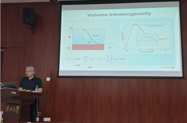 孟立建教授向与会者简要介绍波尔图理工大学的基本情况和发展历史,详细讲解半导体透明导电薄膜的应用领域及其制备和表征技术,重点介绍制备参数对透明导电薄膜特性的影响、透明导电薄膜光学参数的计算以及如何在柔性衬底上沉积透明导电薄膜。报告结束后,孟立建教授与在场师生就半导体透明导电薄膜的制备和表征技术展开了深入的探讨与交流,对现场师生提出的问题进行了详细的解答。